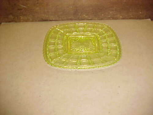 Vaseline 7 3/4" Square Beaded Block Pattern Plate-Nice