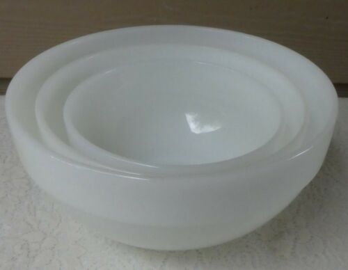 Vintage Fire-King White Colonial Band 3 Piece Mixing Nesting Bowl Set