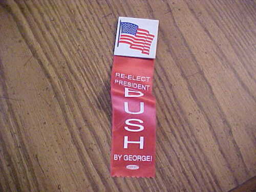 Title (ebay affiliate link): Re-Elect George Bush BY George campaign pin button ribbon political 8 inch long