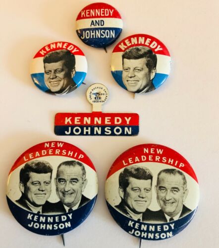 Title (ebay affiliate link): Nice Lot of Five JFK/LBJ Litho Political Pinback Buttons and One Tab