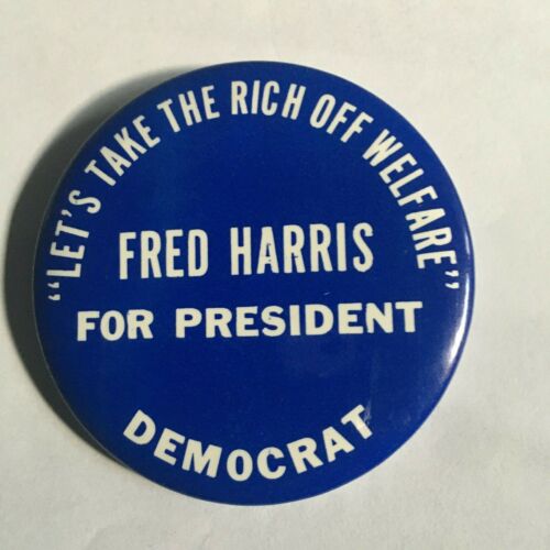 Title (ebay affiliate link): "Let''s Take the Rich off Welfare" Fred Harris for President Democrat button-1976