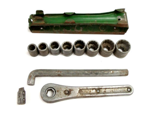 Hex Drive Socket Wrench Ratchet Set in Green Metal Holder Vintage 11 Pieces
