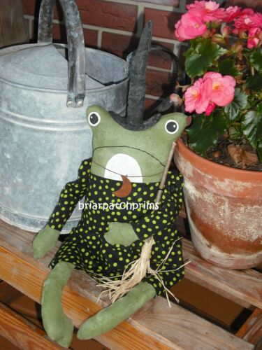 Primitive Halloween Frog Witch w her Broom Doll Country Farmhouse Decoration