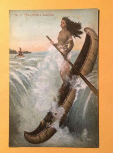 Title (ebay affiliate link): C1907 POSTCARD THE INDIAN SACRIFICE, CANOE OVER FALLS 509