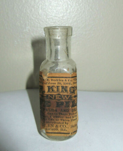 Title (ebay affiliate link): Antique Dr. Kings New Life Pills Glass Bottle Sample Size Label Constipation