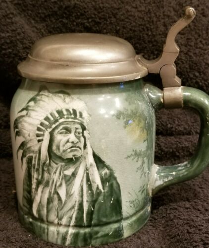 Title (ebay affiliate link): VERY INTERESTING ANTIQUE CERAMIC MUG WITH HAND PAINTED? NATIVE AMERICAN PORTRAIT