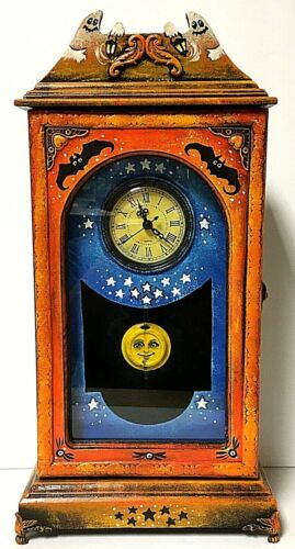 Title (ebay affiliate link): Vintage Hand-Painted Wooden Halloween Pendulum Table Mantle Clock OOAK