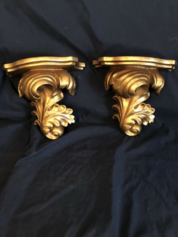 Pair Of Wall Gold Leaf Ornate Wall Shelves Corbels Sconce Shelve