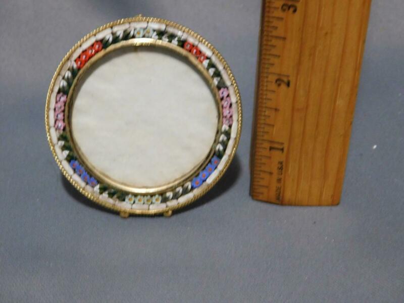 Vintage Italian Micro Mosaic Floral Small Easel Back Round Picture Frame