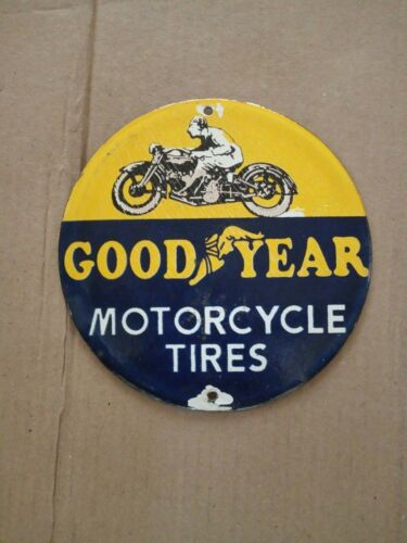 Porcelain Goodyear Motorcycle Enamel Sign Size 6" Inches