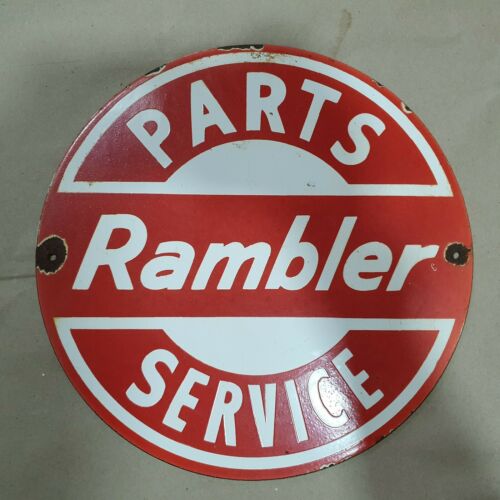 RAMBLER PARTS VINTAGE PORCELAIN SIGN 12 INCHES ROUND