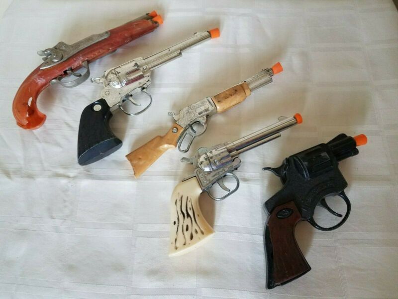 Title (ebay affiliate link): 5 Vintage/Antique Toy Guns, Hubley, Spitfire, Played With, Some Damage