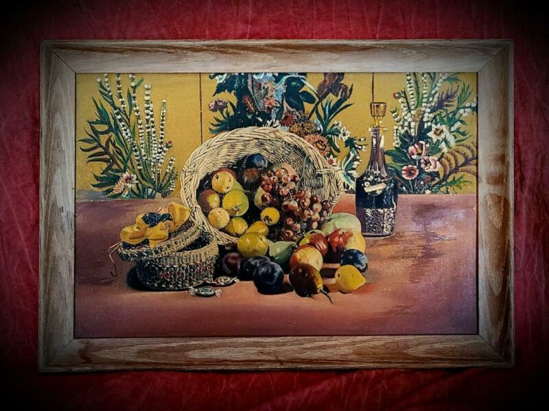 Title (ebay affiliate link): Delightful Signed Vintage Still Life Oil Painting W/Original Pickled Oak Frame