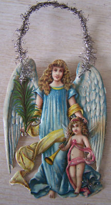 VINTAGE VICTORIAN TINSEL SCRAP ORNAMENT ANGEL