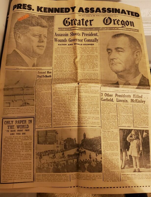 Title (ebay affiliate link): President John F Kennedy Assassination Newspaper Greater Oregon Oregonian Oswald