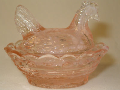 PINK MILK SLAG GLASS HEN / CHICKEN ON NEST DISH ROOSTER