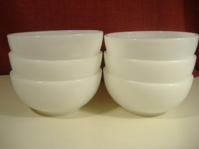 6 FIRE KING PLAIN MILK GLASS 5" CEREAL CHILI BOWLS