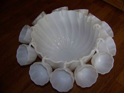 Wonderful vintage Hazel Atlas milk glass punch bowl set