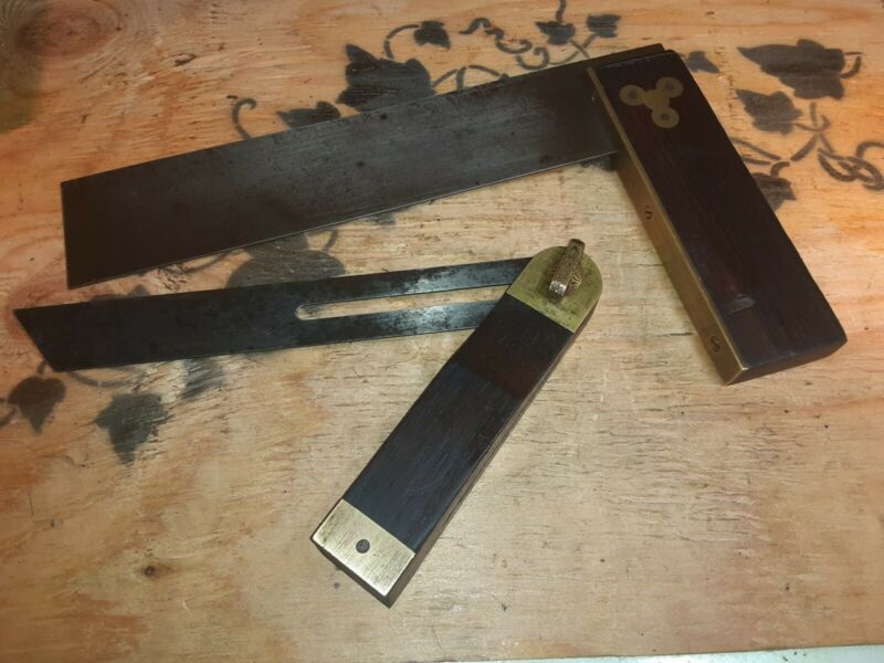 Title (ebay affiliate link): LOT 2 Henry Disston & Son Brass Rosewood Try Square 12" and 8" bevel square. NR
