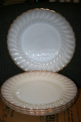 5 ANCHOR HOCKING MILK GLASS SWIRL DINNER PLATES GOLD