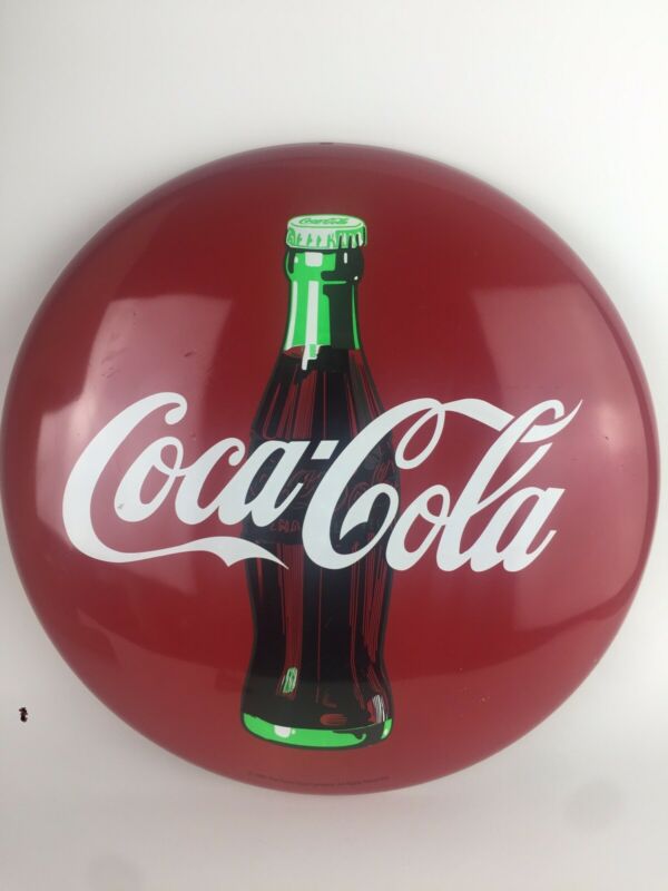 Title (ebay affiliate link): Vintage 1990 Coca-Cola Company Classic Red Metal Coke Button Sign - 12" Round