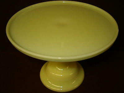 VASELINE URANIUM MILK GLASS CAKE STAND PLATE / PEDESTAL