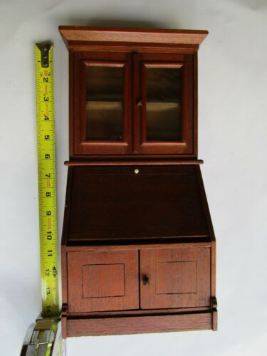 Antique Wooden Hall Cabinet Secretary Hutch real glass