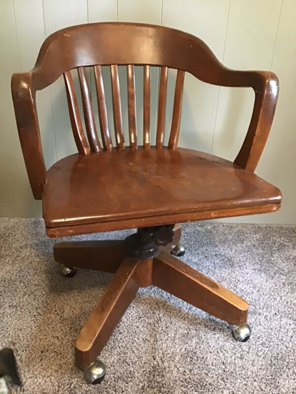 Title (ebay affiliate link): Vintage WOOD SWIVEL BANKER CHAIR antique office industrial wooden arm desk chair