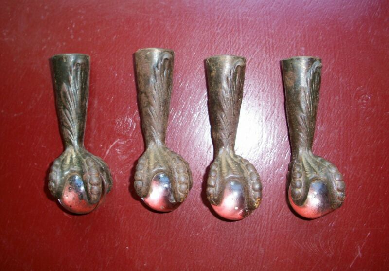 4 Vintage Ball and Claw Piano Stool Feet, Iron and Glass