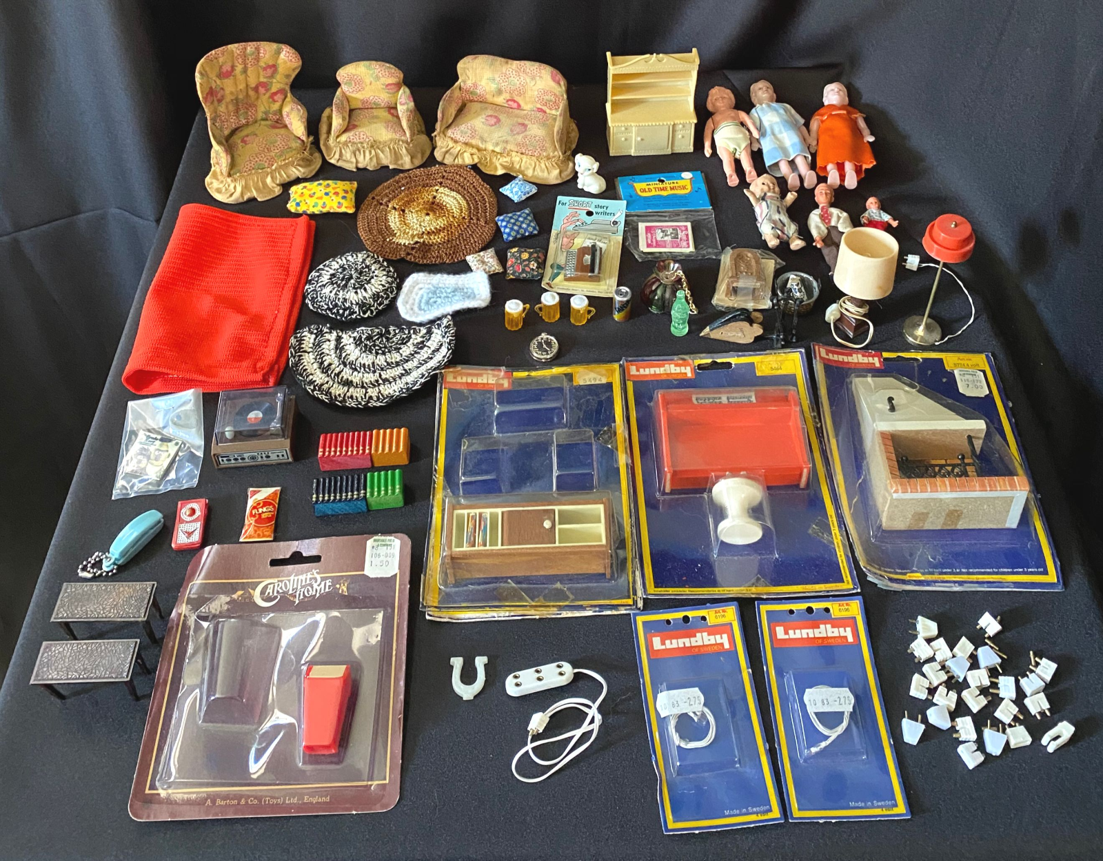 Vintage Dollhouse Furniture & Accessory Assortment LUNDBY RENWAL Piano Fireplace