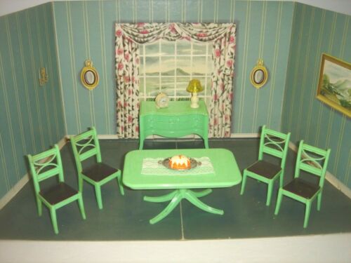 Title (ebay affiliate link): 7 Piece Grouping 1950''s Renwal Green Dollhouse Dining Room Furniture & Access.
