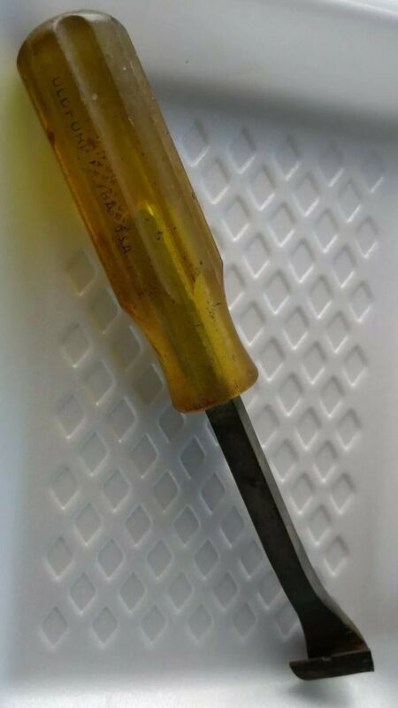 VINTAGE & RARE OLD FORT 8A NAIL PULLER / SPRING TOOL - Hard Yellow Handle