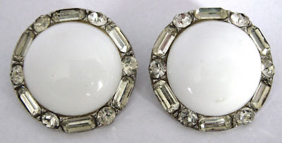 Vintage Milk Glass Cabochon Rhinestone Earrings