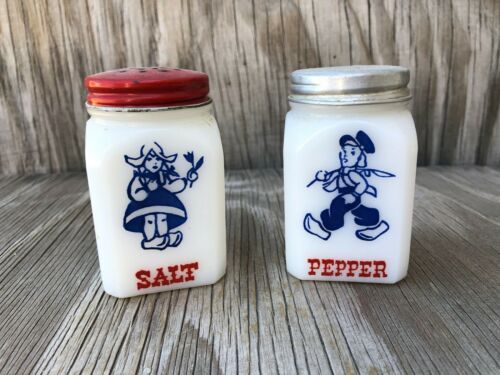Hazel Atlas Milk Glass Dutch Boy & Girl Salt & Pepper Vintage Shaker Set