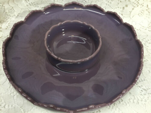 Purple milk glass chip & dip Hobnail pattern candy desert Plate Platter tray art