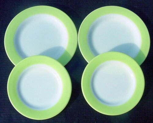 Title (ebay affiliate link): Vtg Pyrex Milk Glass Plates w Lime Green Border 2 -10" Dinner, 2 -8" Salad VGC