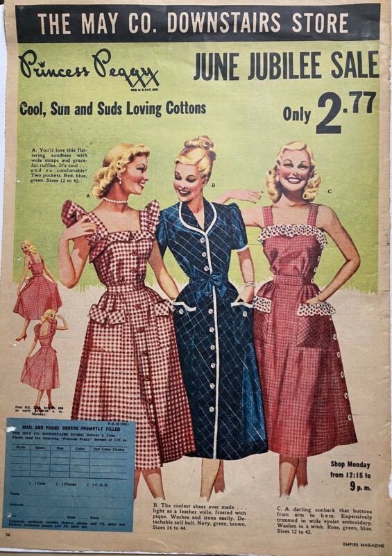 Title (ebay affiliate link): Princess Peggy Dress Print Color Ad Advertisement May Co. Denver Colorado
