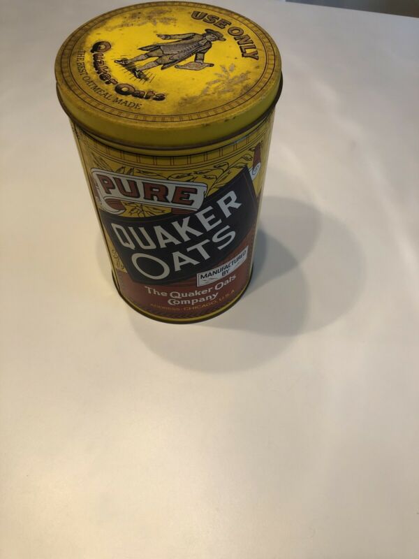 Title (ebay affiliate link): VINTAGE PURE QUAKER ROLLED WHITE OATS TIN 1984 Limited Edition
