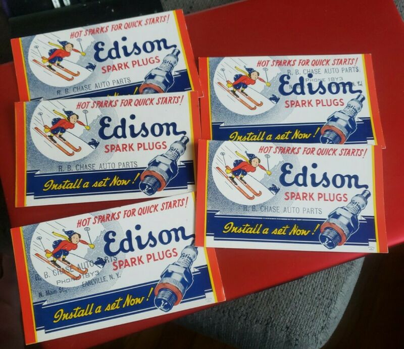 Lot Of 5 Vintage Edison Spark Plugs Advertising Ink Blotters, RB Chase Earlville