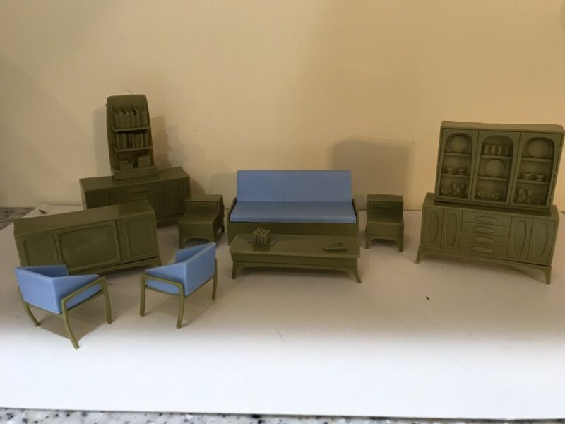 Title (ebay affiliate link): MARX Imagination Vintage Dollhouse Living Room Furniture Lot TV Two Hutches