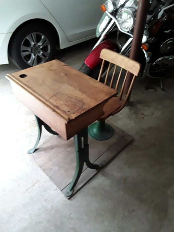 Title (ebay affiliate link): Kenney Brothers/ Wolkins, Boston, Ma. Antique wood school desk, with ink well.