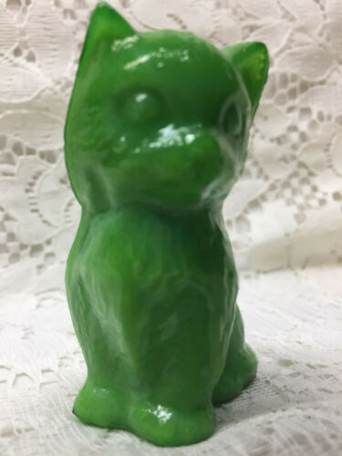 Title (ebay affiliate link): Green Milk Jadeite glass Cat Kitten paperweight kitty / Cotton Jade slag opaque