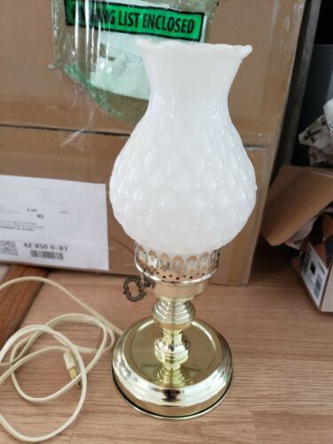 Vintage White Milk Glass Hurricane Electric Table Lamp