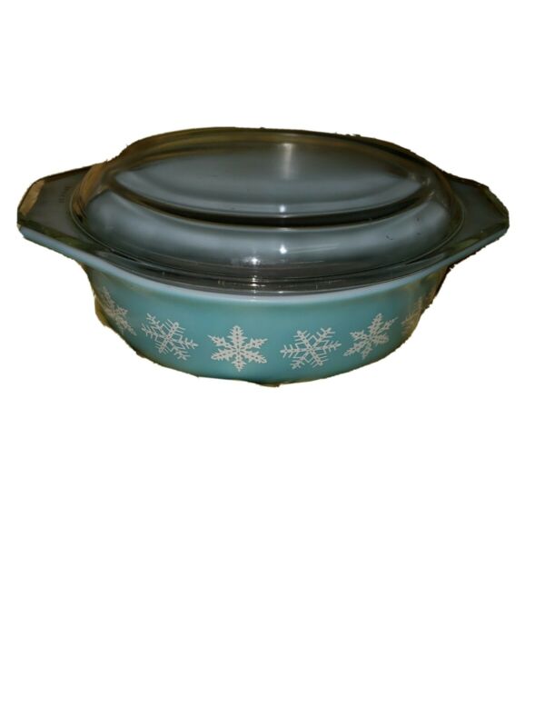 Title (ebay affiliate link): Vintage Pyrex Snowflake (Turquoise) #043 1.5 quart Casserole with Lid.