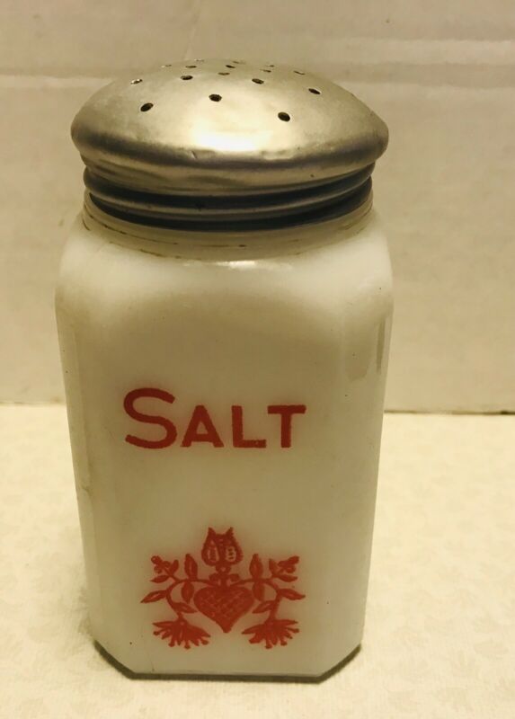 VINTAGE MCKEE RED DESIGN MILK GLASS SALT RANGE SHAKER