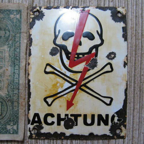 Title (ebay affiliate link): 100% ORIGINAL - Porcelain Sign 1939-1945, WWII, Danger, Skull & Crossbones No 97