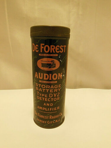 Title (ebay affiliate link): ANTIQUE DeFOREST RADIO AUDION STORAGE BATTERY TYPE DV2 DETECTOR & AMPLIFIER TIN