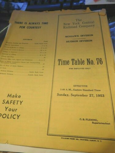 Title (ebay affiliate link): 1953 NYC Railroad Company time Table No 76,Mohawk Division,Hudson Division