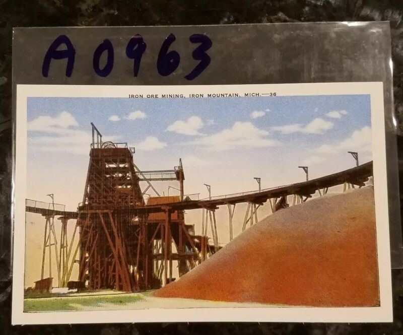 Title (ebay affiliate link): Linen postcard, Iron Ore Mining in Iron Mountain, Michigan
