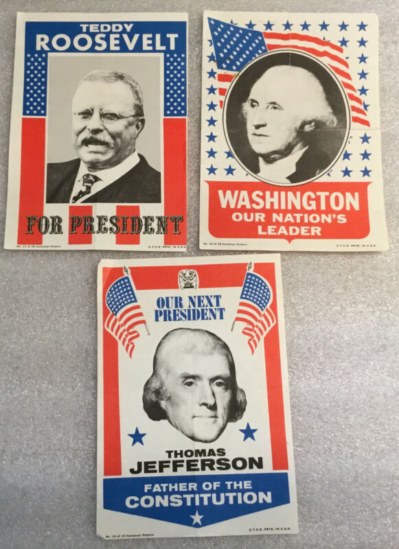 Title (ebay affiliate link): Vtg 1972 Topps Presidential Campaign Posters, Jefferson, Roosevelt, Washington